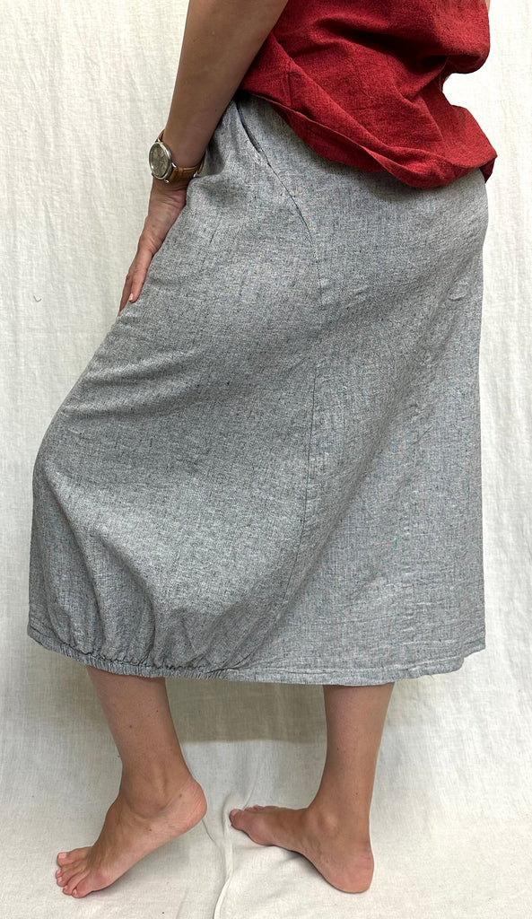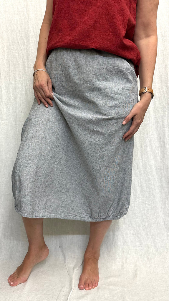 Linen Cotton Crosshatch Side Elastic Skirt (Other color available)